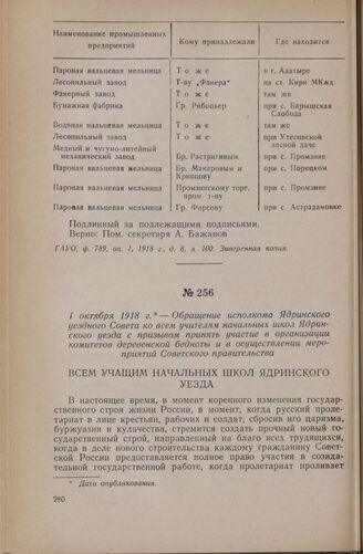 1 октября 1918 г. — Обращение исполкома Ядринского уездного Совета ко всем учителям начальных школ Ядринского уезда с призывом принять участие в организации комитетов деревенской бедноты и в осуществлении мероприятий Советского правительства