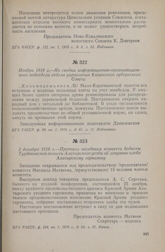 Ноябрь 1918 г. — Из сводки информационно-организационного подотдела отдела управления Казанского губернского Совета