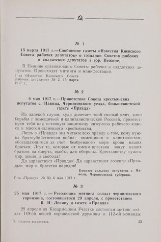 25 мая 1917 г. — Резолюция митинга солдат черниговского гарнизона, состоявшегося 29 апреля, с приветствием В. И. Ленину и газете «Правда»