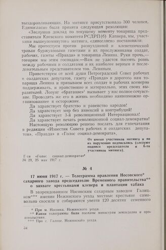 17 июня 1917 г. — Телеграмма правления Носовского сахарного завода председателю Временного правительства о захвате крестьянами клевера и плантации табака
