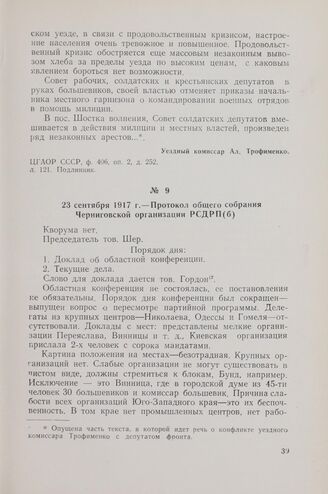 23 сентября 1917 г. — Протокол общего собрания Черниговской организации РСДРП(б)