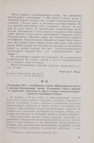 24 декабря 1917 г. — Сообщение газеты «Пролетарская мысль» о разгоне Центральной радой Сосницкого Совета рабочих и солдатских депутатов и аресте членов исполнительного комитета Сосницкого Совета