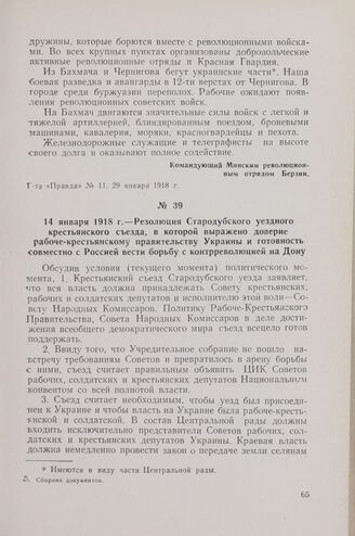 14 января 1918 г. — Резолюция Стародубского уездного крестьянского съезда, в которой выражено доверие рабоче-крестьянскому правительству Украины и готовность совместно с Россией вести борьбу с контрреволюцией на Дону // Госархив Смоленской обл., ф. 7, оп. 1, л. 273, л. 25.