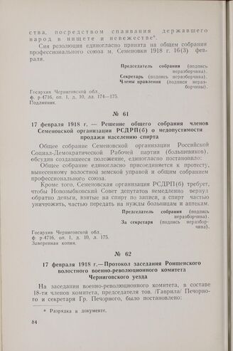 17 февраля 1918 г. — Протокол заседания Роищенского волостного военно-революционного комитета Черниговского уезда
