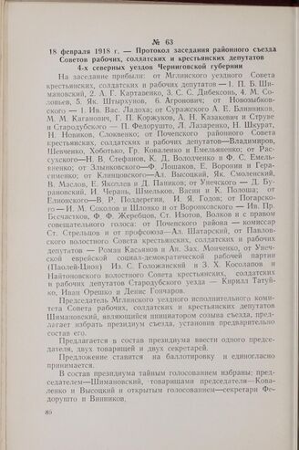 18 февраля 1918 г. — Протокол заседания районного съезда Советов рабочих, солдатских и крестьянских депутатов 4-х северных уездов Черниговской губернии