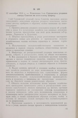 22 сентября 1918 г. — Резолюция 1-го Суражского уездного съезда Советов по земельному вопросу