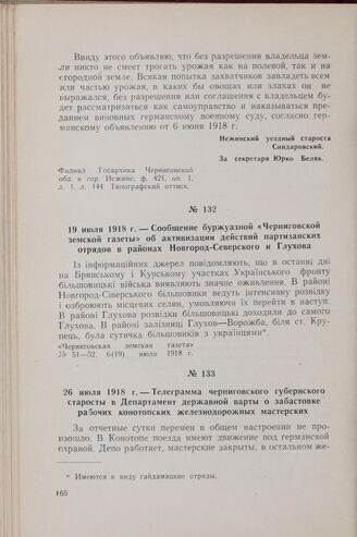 26 июля 1918 г. — Телеграмма черниговского губернского старосты в Департамент державной варты о забастовке рабочих конотопских железнодорожных мастерских