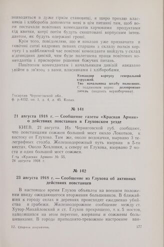 23 августа 1918 г. — Сообщение из Глухова об активных действиях повстанцев