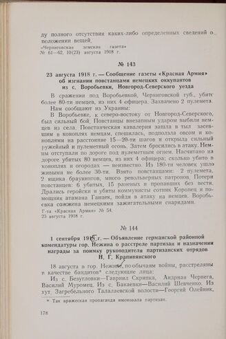 23 августа 1918 г. — Сообщение газеты «Красная Армия» об изгнании повстанцами немецких оккупантов из с. Воробьевки, Новгород-Северского уезда