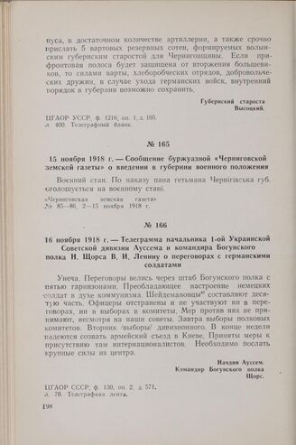 15 ноября 1918 г. — Сообщение буржуазной «Черниговской земской газеты» о введении в губернии военного положения