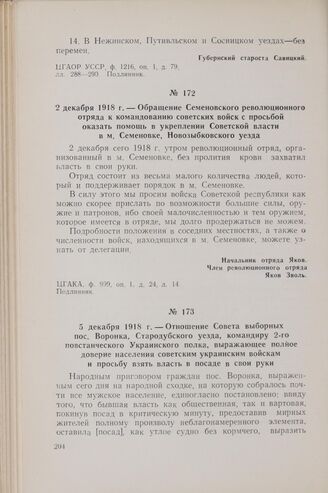 2 декабря 1918 г. — Обращение Семеновского революционного отряда к командованию советских войск с просьбой оказать помощь в укреплении Советской власти в м. Семеновке, Новозыбковского уезда