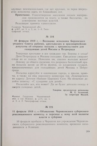 11 февраля 1919 г. — Объявление Черниговского губернского революционного комитета о переходе к нему всей полноты власти в губернии // Г-та «Известия Черниговского временного военно-революционного комитета» № 21, 11 февраля 1919 г.