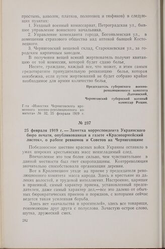 25 февраля 1919 г. — Заметка корреспондента Украинского бюро печати, опубликованная в газете «Красноармейский листок», о работе ревкомов и Советов на Черниговщине