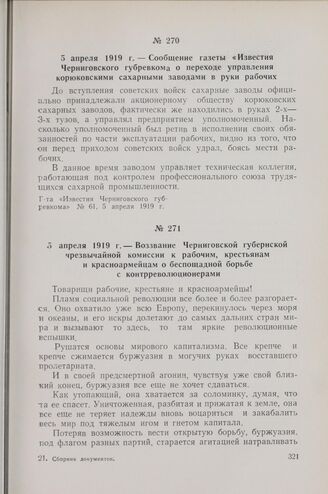 5 апреля 1919 г. — Воззвание Черниговской губернской чрезвычайной комиссии к рабочим, крестьянам и красноармейцам о беспощадной борьбе с контрреволюционерами