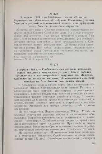 6 апреля 1919 г. — Сообщение члена коллегии земельного отдела исполкома Козелецкого уездного Совета рабочих, крестьянских и красноармейских депутатов тов. Лещенко, сделанное на заседании коллегии, об организации советских хозяйств на базе бывших п...