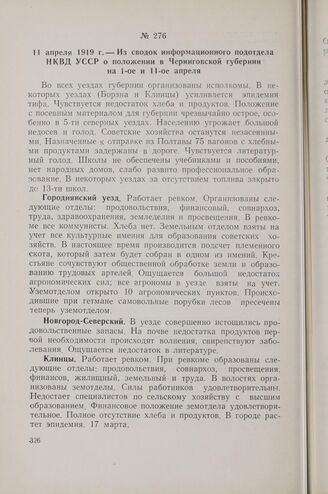 11 апреля 1919 г. — Из сводок информационного подотдела НКВД УССР о положении в Черниговской губернии на 1-ое и 11-ое апреля