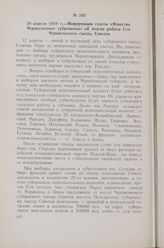24 апреля 1919 г. — Информация газеты «Известия Черниговского губревкома» об итогах работы 1-го Черниговского съезда Советов