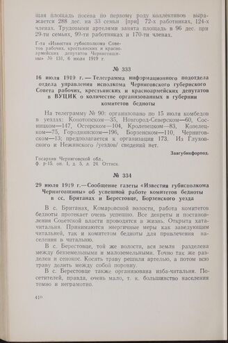 16 июля 1919 г. — Телеграмма информационного подотдела отдела управления исполкома Черниговского губернского Совета рабочих, крестьянских и красноармейских депутатов в ВУЦИК о количестве организованных в губернии комитетов бедноты