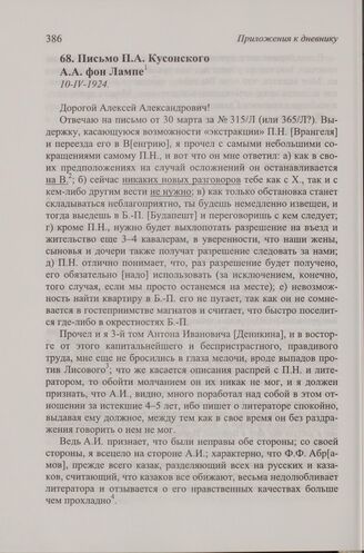 Письмо П.А. Кусонского А.А. фон Лампе. 10 апреля 1924 г.