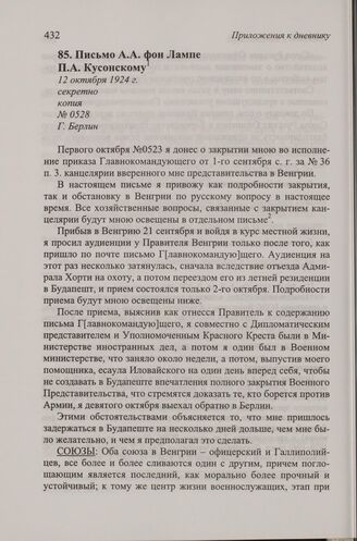 Письмо А.А. фон Лампе П.А. Кусонскому. Г. Берлин, 12 октября 1924 г. // ГА РФ. Ф. 5853. Оп. 1. Д. 18. Л. 250-262. Машинопись, копия, русский.