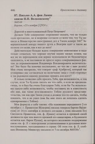 Письмо А.А. фон Лампе князю П.П. Волконскому. Берлин, 21 ноября 1924 г.