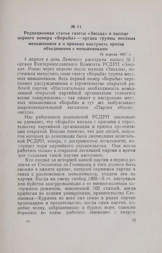 Редакционная статья газеты «Звезда» о выходе первого номера «Борьбы» — органа группы местных меньшевиков и о призыве выступить против объединения с меньшевиками. 18 апреля 1917 г.