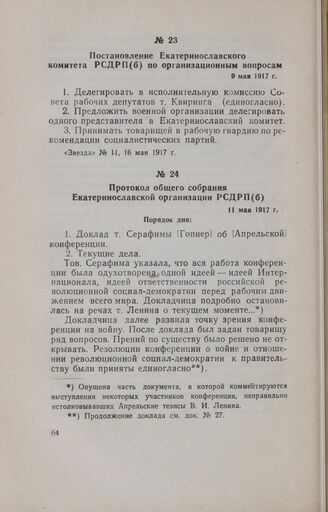 Протокол общего собрания Екатеринославской организации РСДРП(б). 11 мая 1917 г. // «Звезда» № 11. 16 мая 1917 г.