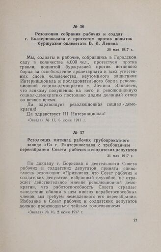 Резолюция собрания рабочих и солдат г, Екатеринослава с протестом против попыток буржуазии оклеветать В. И. Ленина. 28 мая 1917 г. // «Звезда» № 17, 6 июня 1917 г.