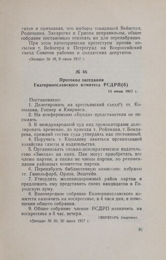 Протокол заседания Екатеринославского комитета РСДРП(б). 13 июня 1917 г. // «Звезда» № 20, 20 июня 1917 г.