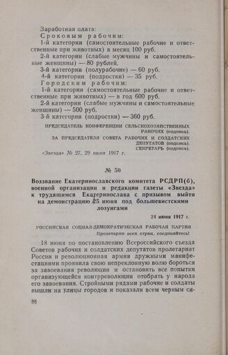 Воззвание Екатеринославского комитета РСДРП(б), военной организации и редакции газеты «Звезда» к трудящимся Екатеринослава с призывом выйти на демонстрацию 25 июня под большевистскими лозунгами. 24 июня 1917 г. // «Звезда» №.23, 24 июня 1917 г.