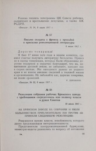 Письмо солдата с фронта с просьбой о присылке революционной литературы. 6 июля 1917 г. // «Звезда», № 32, 6 июля 1917 г.