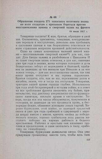 Обращение солдата 271 запасного пехотного полка ко всем солдатам с призывом бороться против восстановления закона о смертной казни на фронте. 19 июля 1917 г. // «Звезда», № 43, 19 июля 1917 г.