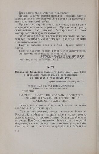 Воззвание Екатеринославского комитета РСДРП(б) с призывом голосовать за большевиков на выборах в городскую думу. [Первая половина августа] 1917 г. // Партархив Днепропетровского обкома КП Украины, ф. 24, д. 386, л. 21, Типографский оттиск.