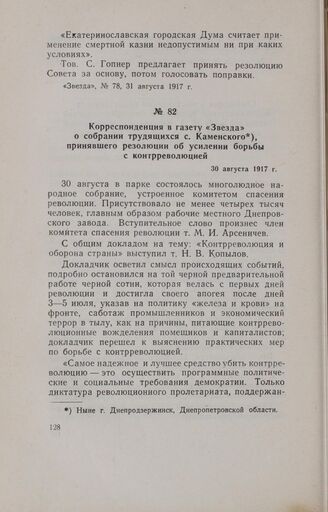 Корреспонденция в газету «Звезда» о собрании трудящихся с. Каменского, принявшего резолюции об усилении борьбы с контрреволюцией. 30 августа 1917 г.