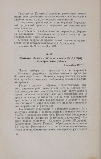 Протокол общего собрания членов РСДРП(б) Заднепровского района. 2 сентября 1917 г. // «Звезда», № 84, 7 сентября 1917 г.