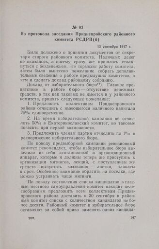 Из протокола заседания Приднепровского районного комитета РСДРП(б). 13 сентября 1917 г.