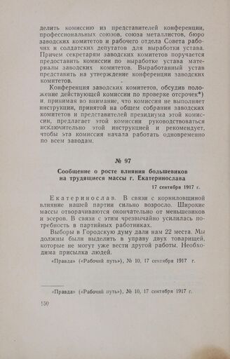 Сообщение о росте влияния большевиков на трудящиеся массы г. Екатеринослава. 17 сентября 1917 г. // «Правда» («Рабочий путь»), № 10, 17 сентября 1917 г.