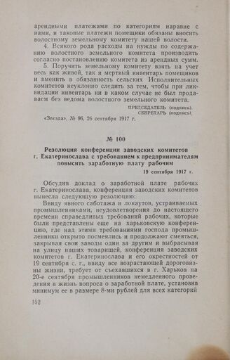 Резолюция конференции заводских комитетов г. Екатеринослава с требованием к предпринимателям повысить заработную плату рабочим. 19 сентября 1917 г. // «Известия юга», № 165, 6 октября 1917 г.