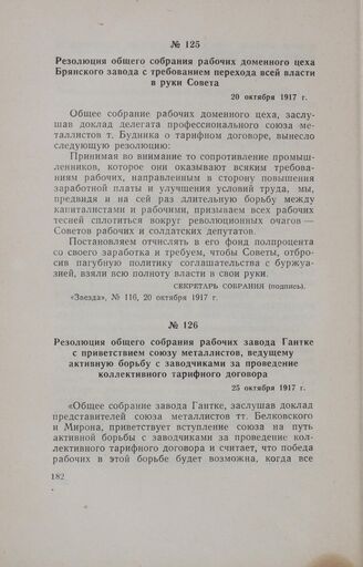 Резолюция общего собрания рабочих завода Гантке с приветствием союзу металлистов, ведущему активную борьбу с заводчиками за проведение коллективного тарифного договора. 25 октября 1917 г.
