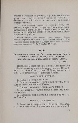 Объявление президиума Екатеринославского Совета рабочих и солдатских депутатов о порядке перевыборов исполнительного комитета Совета. 8 ноября 1917 г.