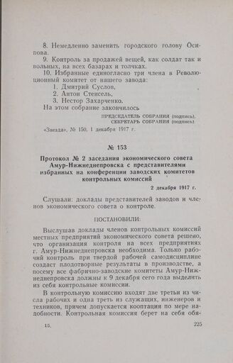 Протокол № 2 заседания экономического совета Амур-Нижнеднепровска с представителями избранных на конференции заводских комитетов контрольных комиссий. 2 декабря 1917 г.