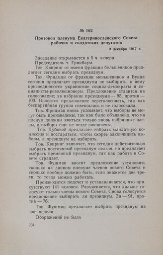 Протокол пленума Екатеринославского Совета рабочих и солдатских депутатов. 9 декабря 1917 г. // «Звезда», № 158, 12 декабря 1917 г.