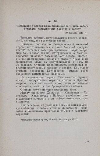 Сообщение о взятии Екатерининской железной дороги отрядами вооруженных рабочих и солдат. 30 декабря 1917 г.