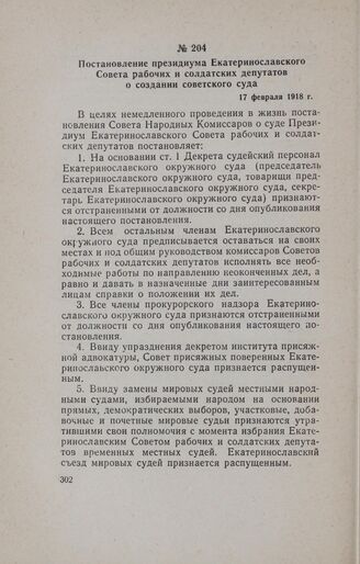Постановление президиума Екатеринославского Совета рабочих и солдатских депутатов о создании советского суда. 17 февраля 1918 г. // «Голос солдата», № 27, 17 февраля 1918 г.