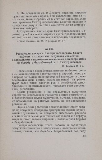 Резолюция пленума Екатеринославского Совета рабочих и солдатских депутатов совместно с заводскими и полковыми комитетами о мероприятиях по борьбе с безработицей в г. Екатеринославе. 19 февраля 1918 г.