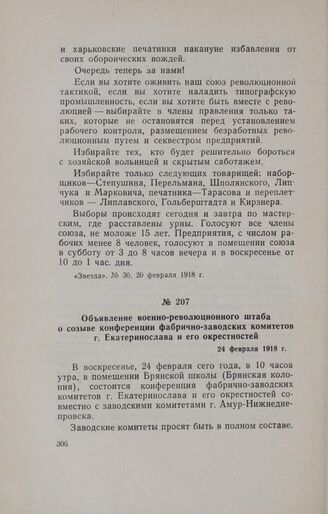 Объявление военно-революционного штаба о созыве конференции фабрично-заводских комитетов г. Екатеринослава и его окрестностей. 24 февраля 1918 г. // «Голос солдата», № 33, 24 февраля 1918 г.
