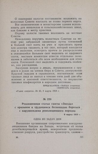 Редакционная статья газеты «Звезда» с призывом к трудящимся беспощадно бороться с нарушителями революционного порядка. 9 марта 1918 г. // «Звезда», № 44, 9 марта 1918 г.