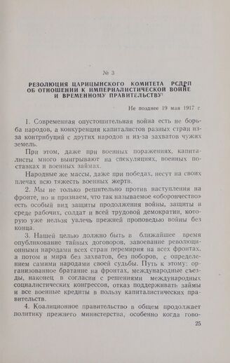 Резолюция Царицынского комитета РСДРП об отношении к империалистической войне и Временному правительству. Не позднее 19 мая 1917 г. // «Борьба» № 3, 28 мая 1917 г.
