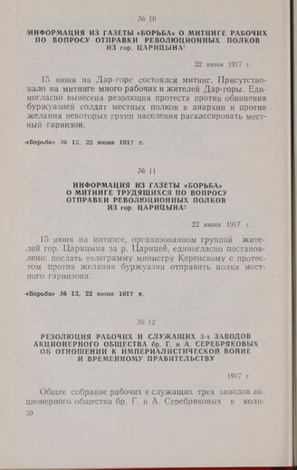 Резолюция рабочих и служащих 2 заводов Акционерного общества бр. Г. и А. Серебряковых об отношении к империалистической войне и Временному правительству. 1917 г. // Госархив Сталинградской области ф. 71, oп. 1. д. 4, л. 184.-Подлинник