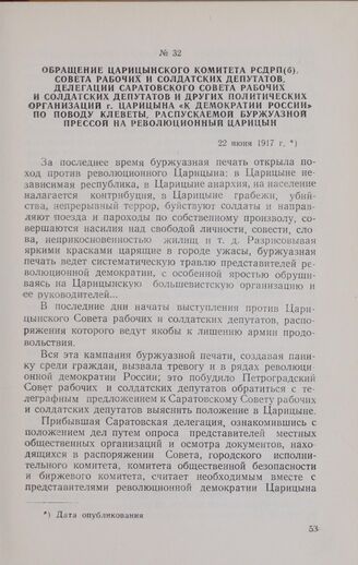 Обращение Царицынского комитета РСДРП(б), Совета рабочих и солдатских депутатов, делегации Саратовского Совета рабочих и солдатских депутатов и других политических организаций г. Царицына «К демократии России» по поводу клеветы, распускаемой буржу...